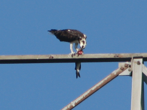 The prey looks to be some kind of small lizard, and the favored part seems to have been the head. Here’s a close-up of the meal before the bird really dug in. Yum!