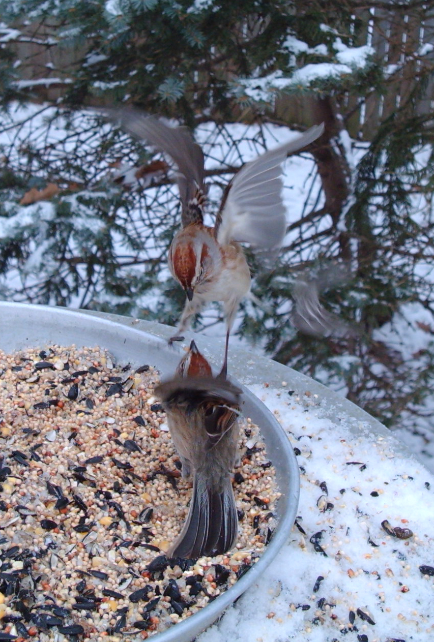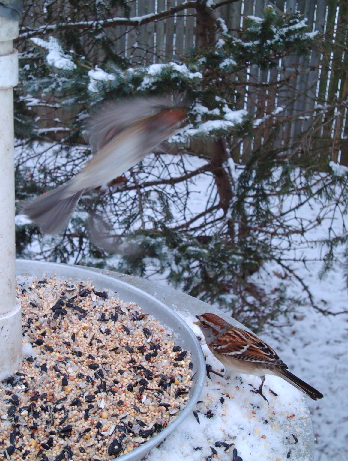 Our Wingscapes Birdcam captured some pretty crazy shots of American Tree Sparrows going nuts at the feeder today. They were whaling on each other!