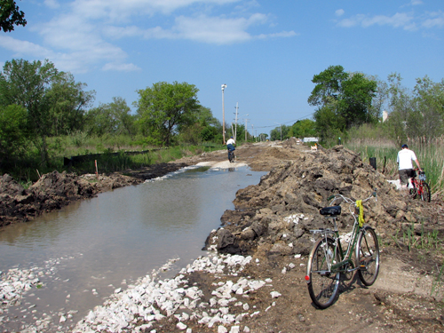 Following the banding demonstration we attended earlier this month, last week we were able to observe at the MAPS team banding station at Rollins Savanna for a while. The team has 10 mist nets set up in one part of the preserve; the nets are checked at least every half hour. When we arrived we joined team members as they checked nets 9 and 10. Everyone was very excited to see that a Ruby-throated Hummingbird was caught in #9.