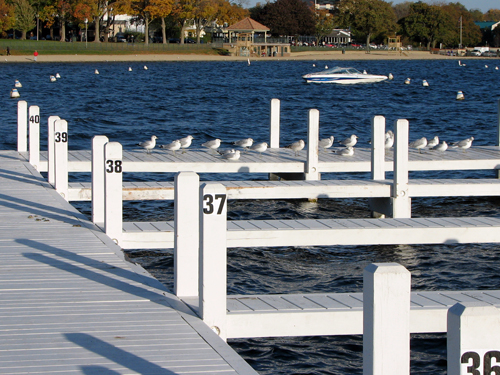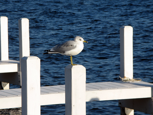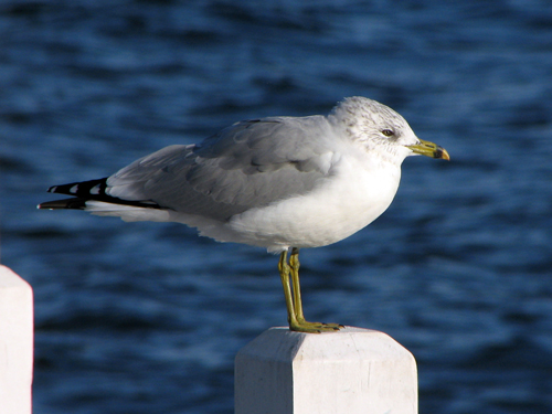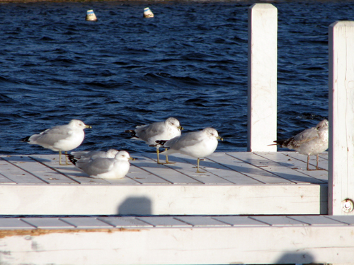The Ring-billed Gull is our most familiar gull here in northeastern Illinois. These photos were taken in mid-October when we finished up our fall foliage drive (through both parts of Kettle Moraine State Park in southeastern Wisconsin) in Lake Geneva. Gulls lined up on the empty piers, bracing themselves against the wind.