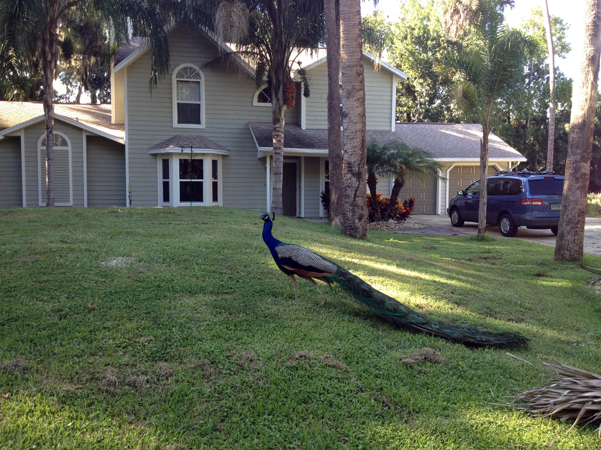 Neighborhood Indian Peafowl in our front yard (RIP Fred) | August 08 2013