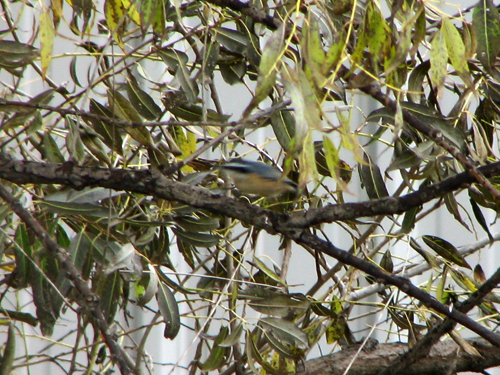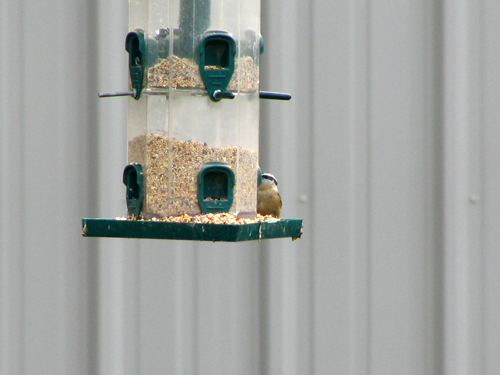 Why, it’s a Red-breasted Nuthatch – our latest yard bird. Welcome! Maybe you’ll pose for a nice photo next time?